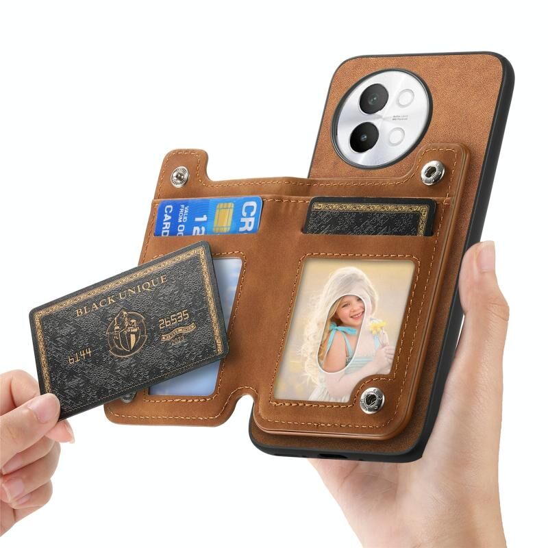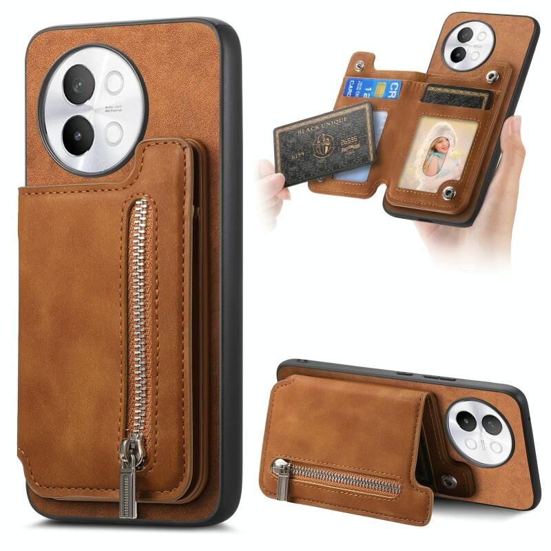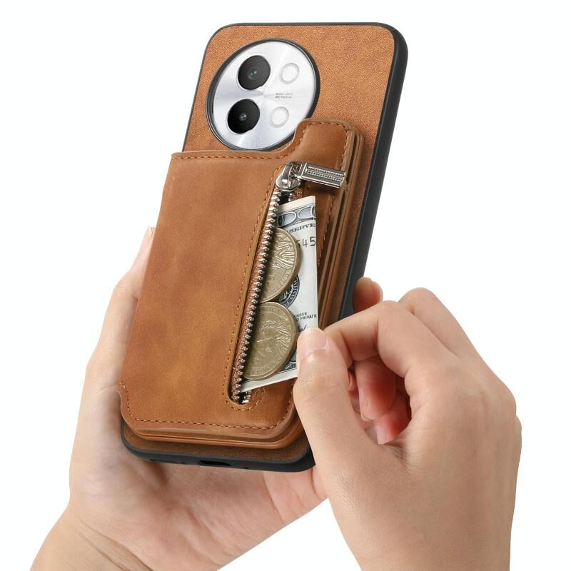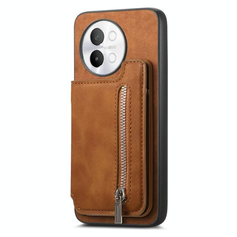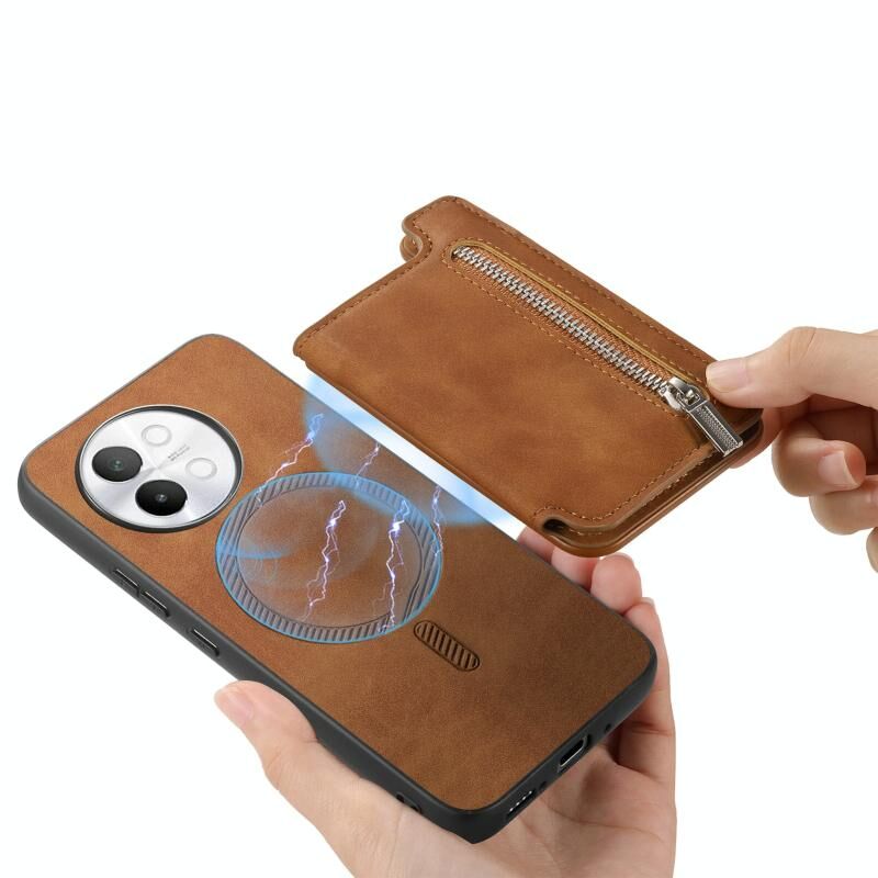 Θήκη κινητού τηλεφώνου για vivo iQOO 11 Pro 5G, Ρετρό με MagSafe και θήκη κάρτας με φερμουάρ (Καφέ)