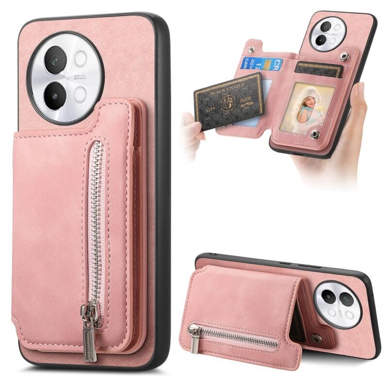 Θήκη κινητού τηλεφώνου για vivo iQOO 11 Pro 5G, Ρετρό με MagSafe και θήκη κάρτας με φερμουάρ (ρόζ)