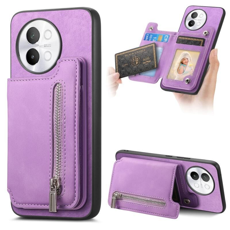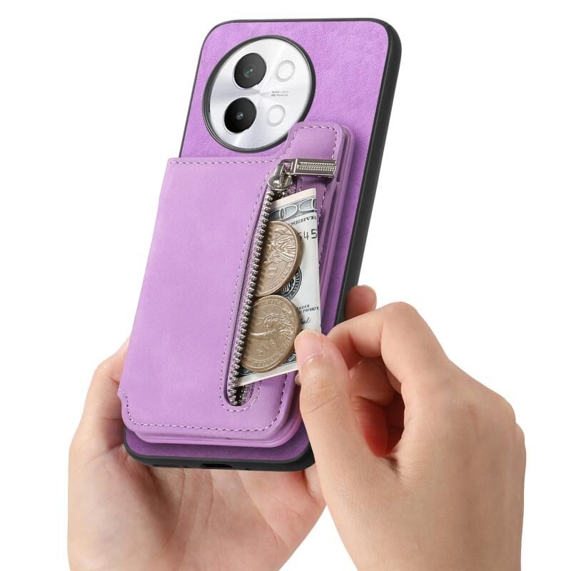 Θήκη κινητού τηλεφώνου για vivo iQOO 11 Pro 5G, Ρετρό με MagSafe και θήκη κάρτας με φερμουάρ (Μωβ)