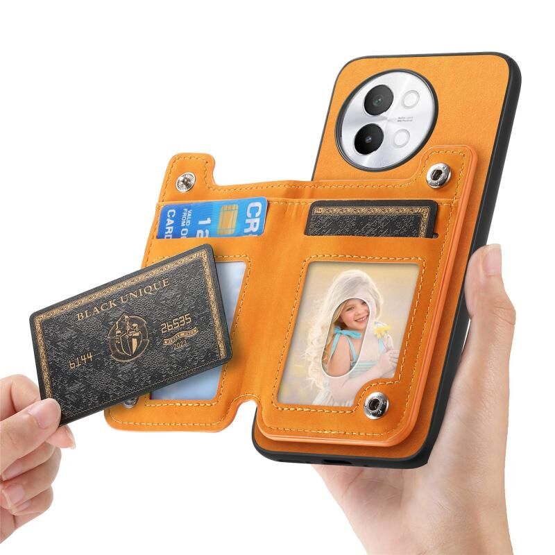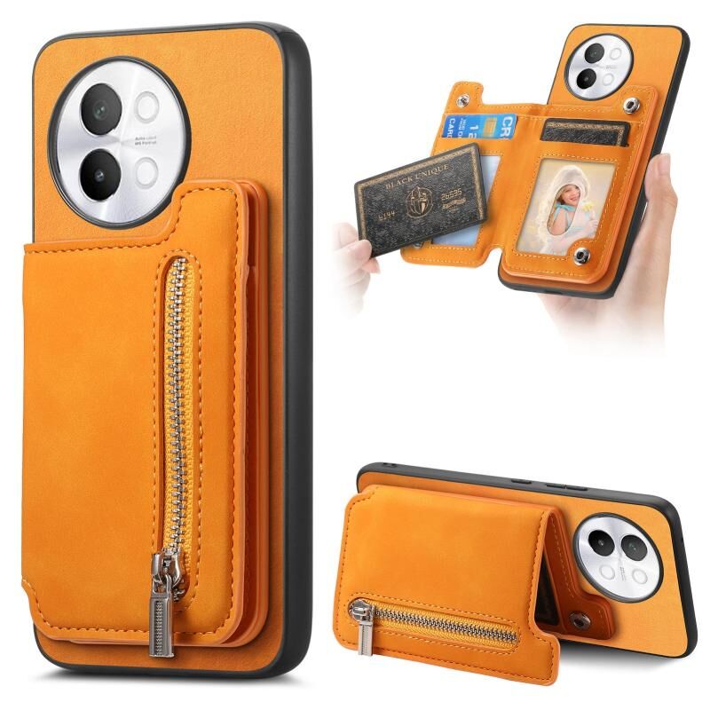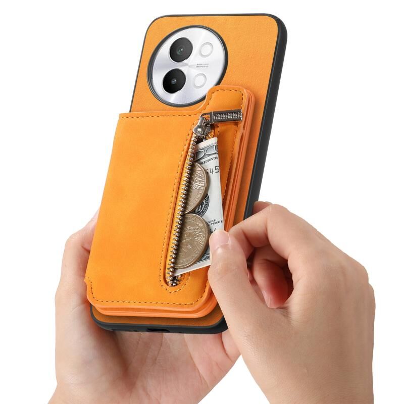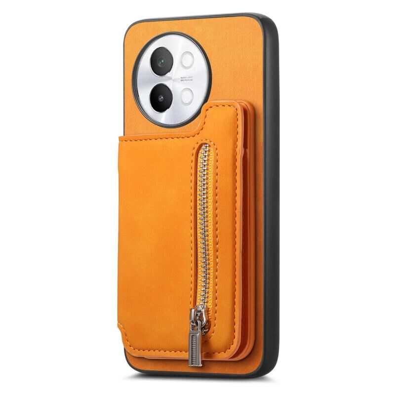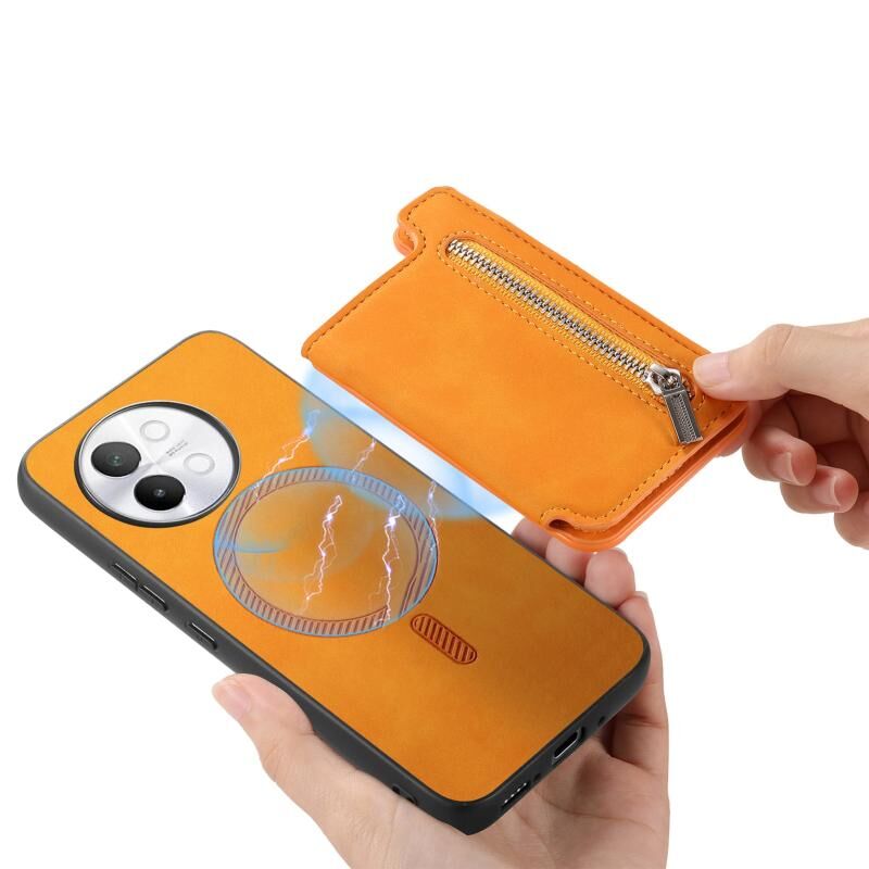 Θήκη κινητού τηλεφώνου για vivo iQOO 11 Pro 5G, Ρετρό με MagSafe και θήκη κάρτας με φερμουάρ (Κίτρινο)