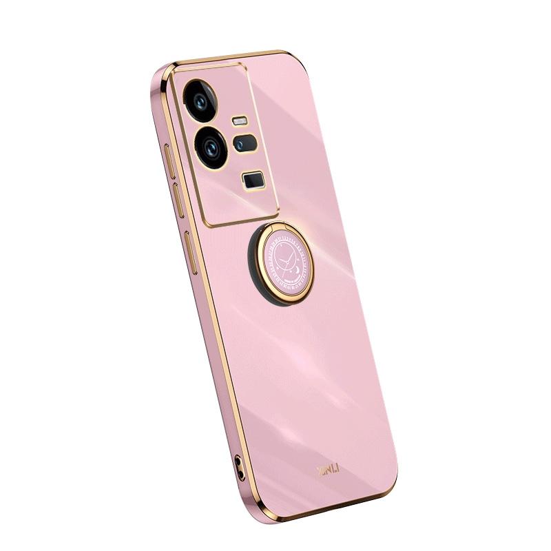 Θήκη τηλεφώνου TPU XINLI με ευθεία άκρη 6D ηλεκτροεπιμετάλλωσης με δακτύλιο στήριξης για vivo iQOO 11 Pro 5G (Μέντα Πράσινο) (Κεραμιδί μωβ)