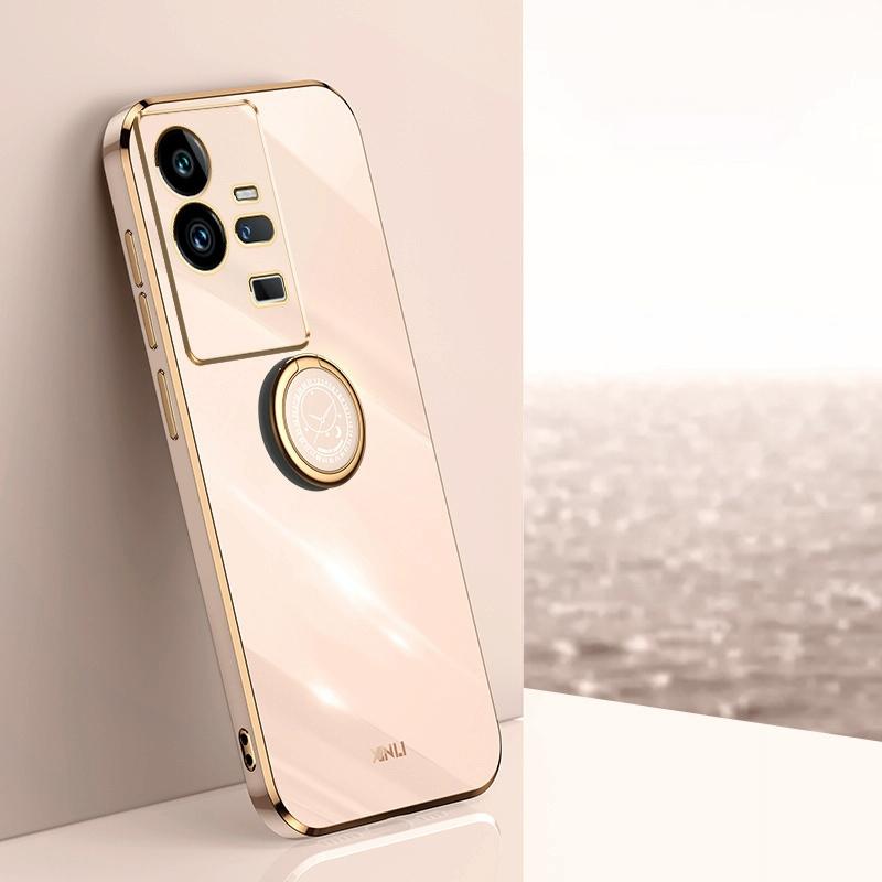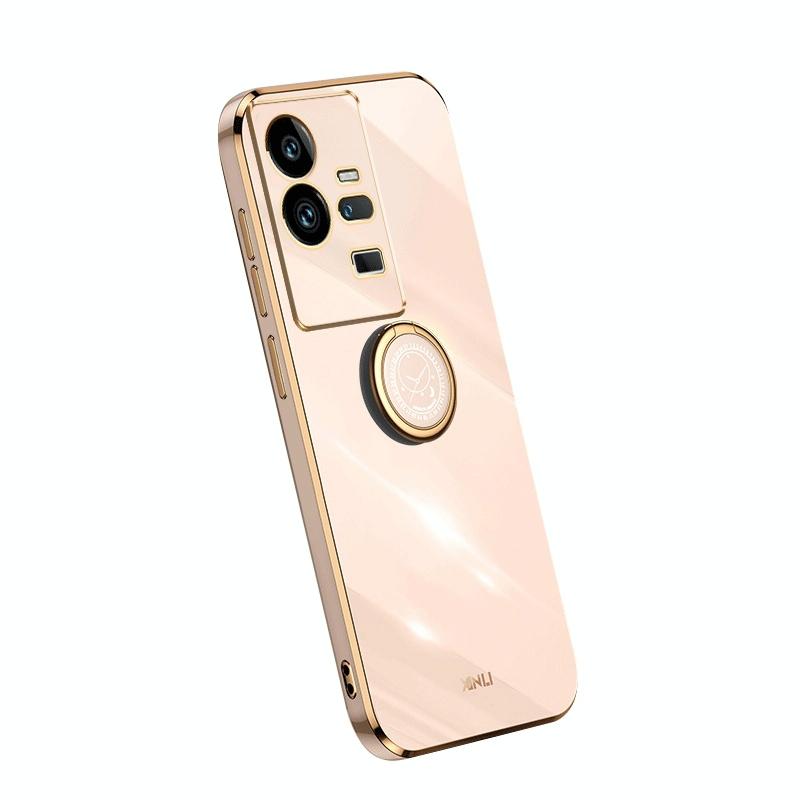 Θήκη τηλεφώνου TPU XINLI με ευθεία άκρη 6D ηλεκτροεπιμετάλλωσης με δακτύλιο στήριξης για vivo iQOO 11 Pro 5G (Μέντα Πράσινο) (ρόζ)