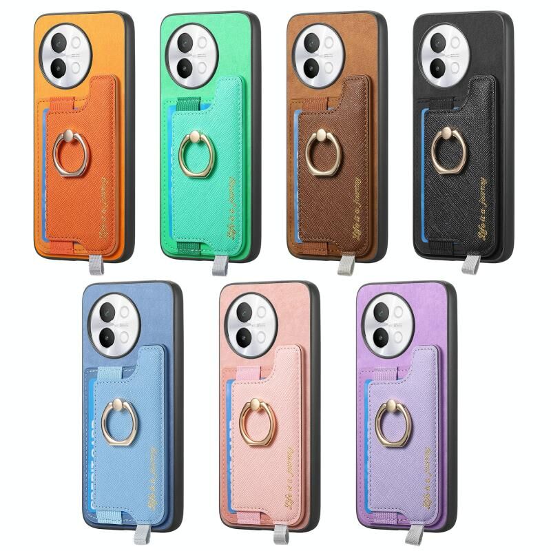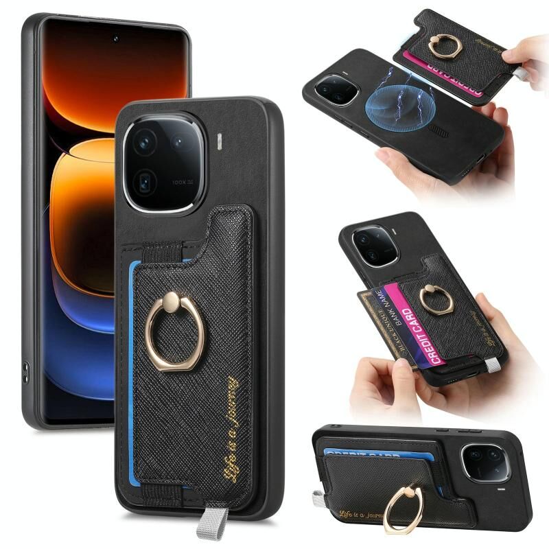 Θήκη τηλεφώνου για vivo iQOO 12 5G, Ρετρό Magsafe, Δερμάτινη με Δαχτυλίδι και Θήκη Καρτών (Μωβ)