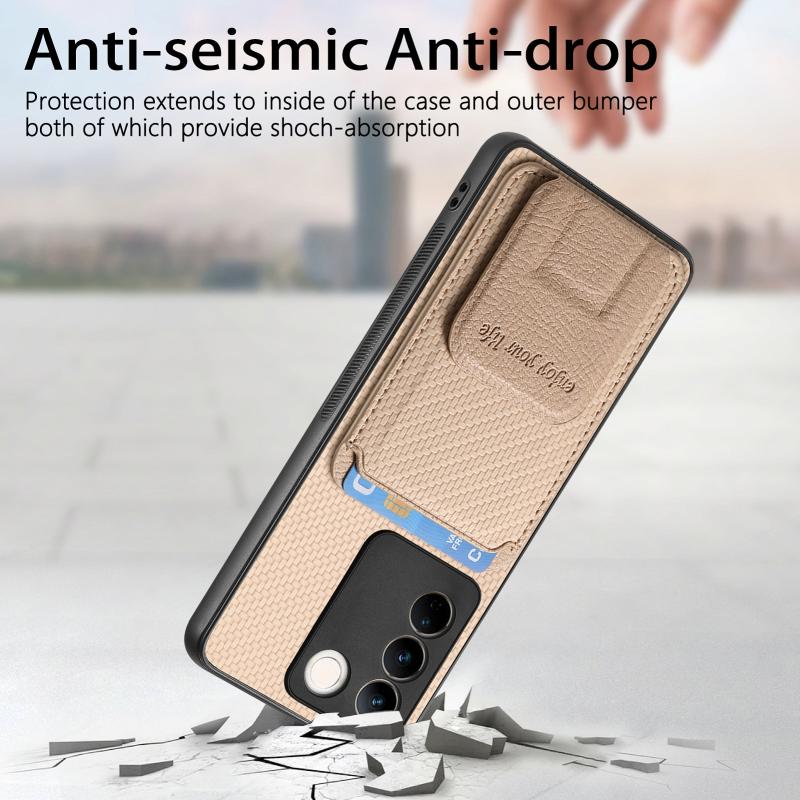 For vivo iQOO 12 Carbon Fiber Card Bag Fold Stand Phone Case(Khaki)