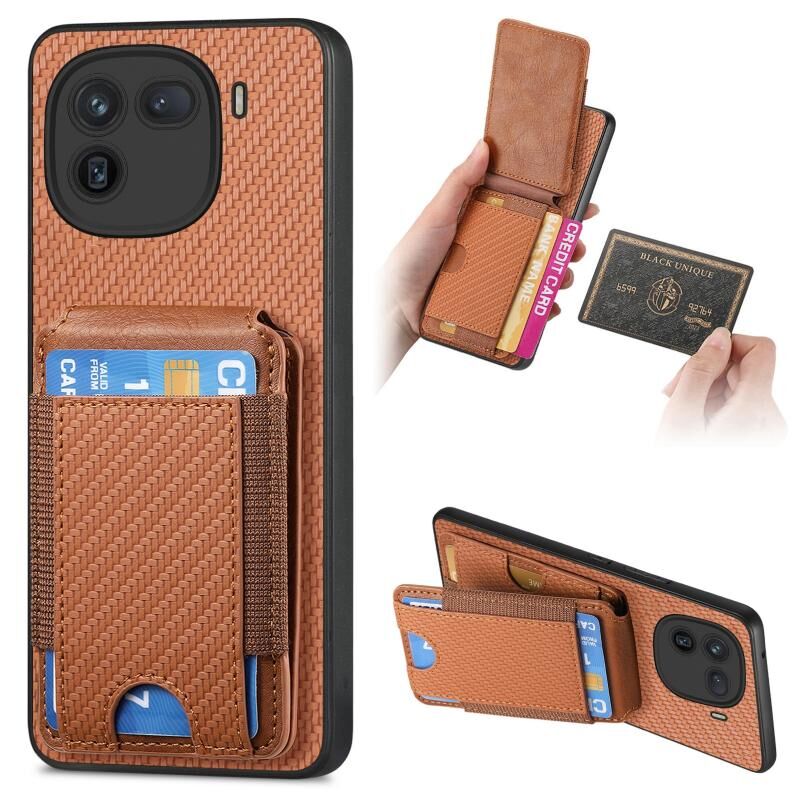 Θήκη τηλεφώνου τύπου πορτοφολιού με κάθετη αναδίπλωση και βάση για vivo iQOO 12, από ανθρακονήματα (Καφέ)