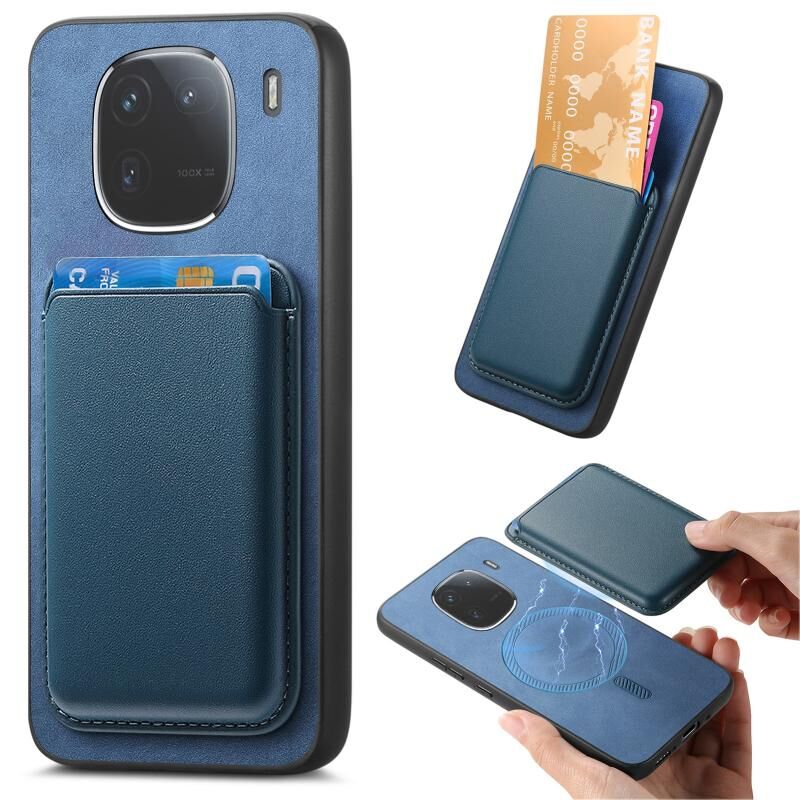 Για vivo iQOO 12 Pro 5G Retro Magsafe κάρτα τσάντα PU πίσω κάλυμμα τηλέφωνο υπόθεση (μπλε)