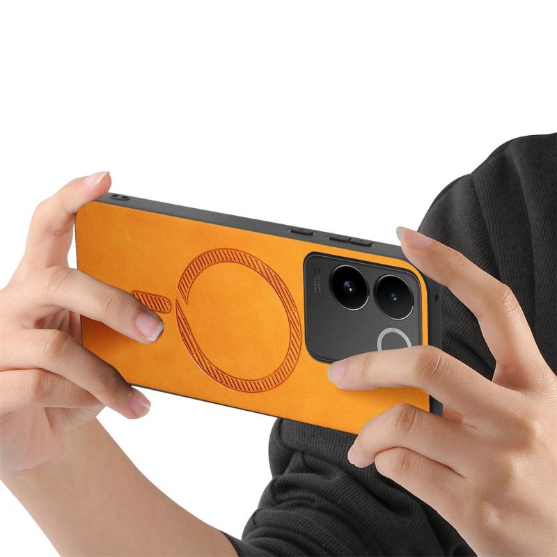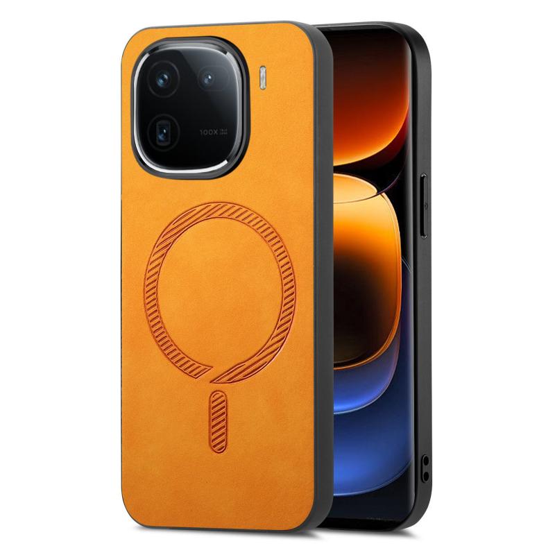 Θήκη τηλεφώνου για vivo iQOO 12 Pro 5G Retro Magsafe Μαγνητική PU Πίσω Κάλυψη (Κίτρινο)