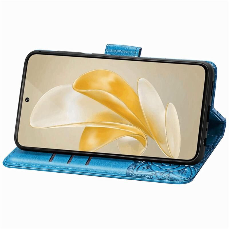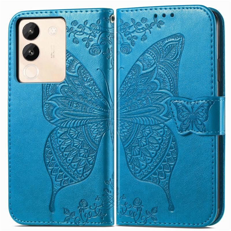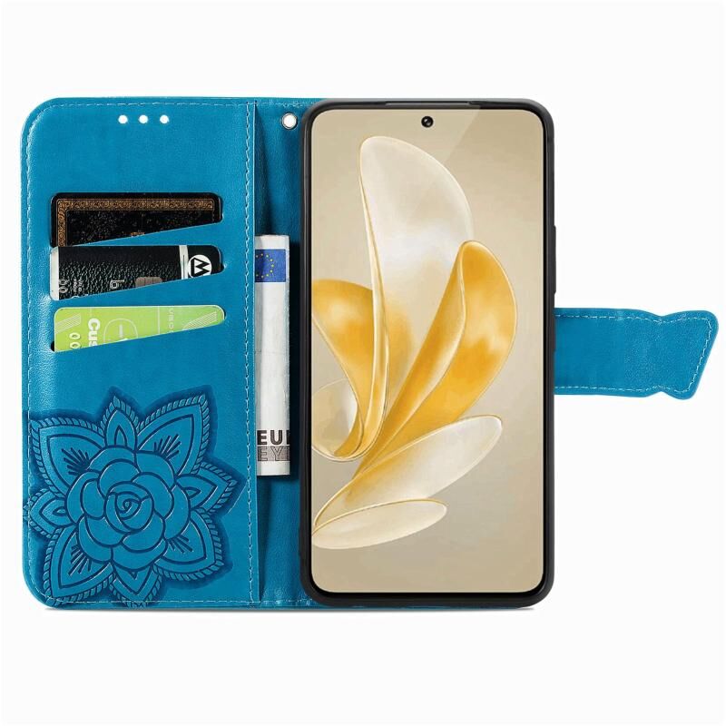 Θήκη τηλεφώνου από δέρμα με ανάγλυφο σχέδιο πεταλούδας και λουλουδιών για vivo iQOO 12 Pro (Μπλε)