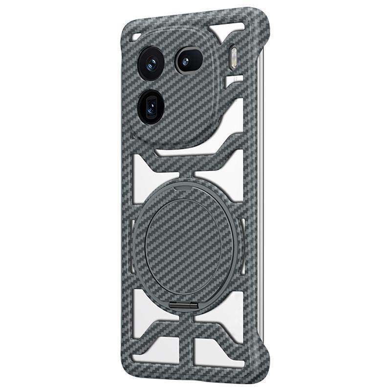 For vivo iQOO 12 Pro Hollow Carbon Fiber Rotating Bracket MagSafe Phone Case(Grey)