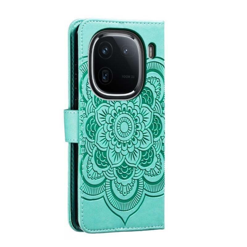 8. Σχεδιασμός ανάγλυφου Sun mandala, Η θήκη είναι κατασκευασμένη από προσεκτικά επιλεγμένο δέρμα που της δίνει μια εκλεπτυσμένη και πολυτελή εμφάνιση και αίσθηση.