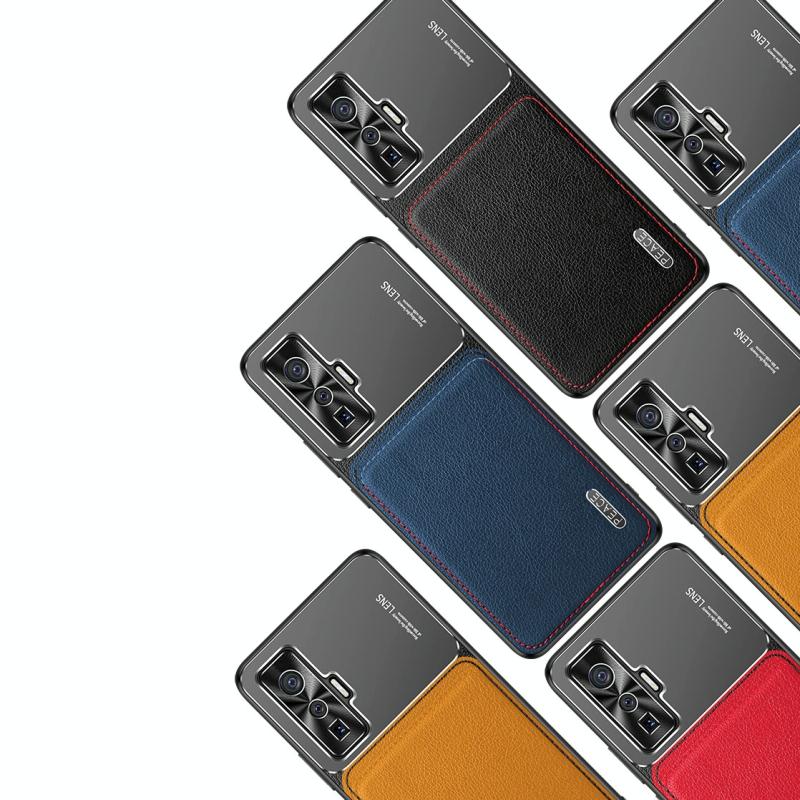 Θήκη προστασίας για vivo iQOO 5 5G με μεταλλική ματ υφή + δέρμα (Μπλε)
