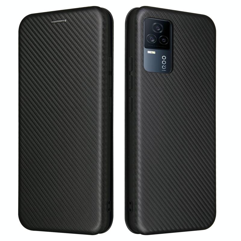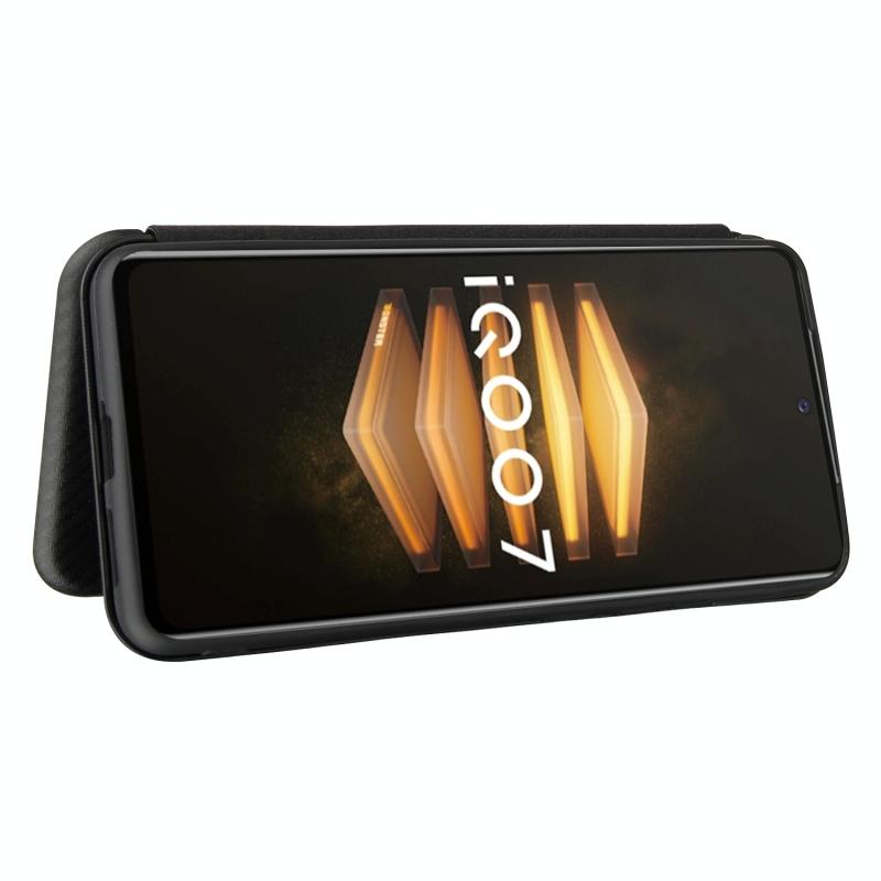 Για vivo iQOO 7 5G Θήκη οριζόντιας αναδίπλωσης από ανθρακονήματα, TPU + PC + Δερματίνη PU με υποδοχή για κάρτες (Μαύρο)