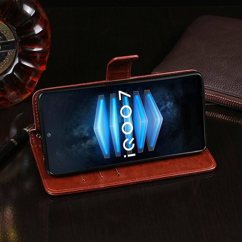 Για vivo iQOO 7 idewei Δερμάτινη Θήκη Flip με Υποδοχές Κάρτας & Θήκη (Μαύρο) (idewei)
