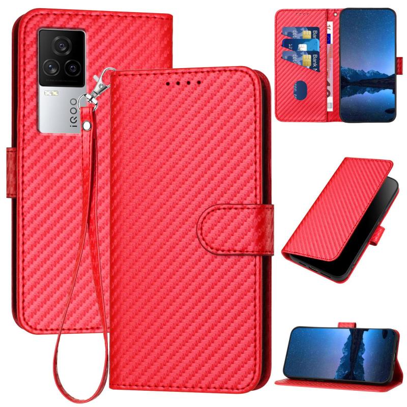 For vivo iQOO 7 India / iQOO Neo5 YX0070 Carbon Fiber Buckle Leather Phone Case with Lanyard(Red)