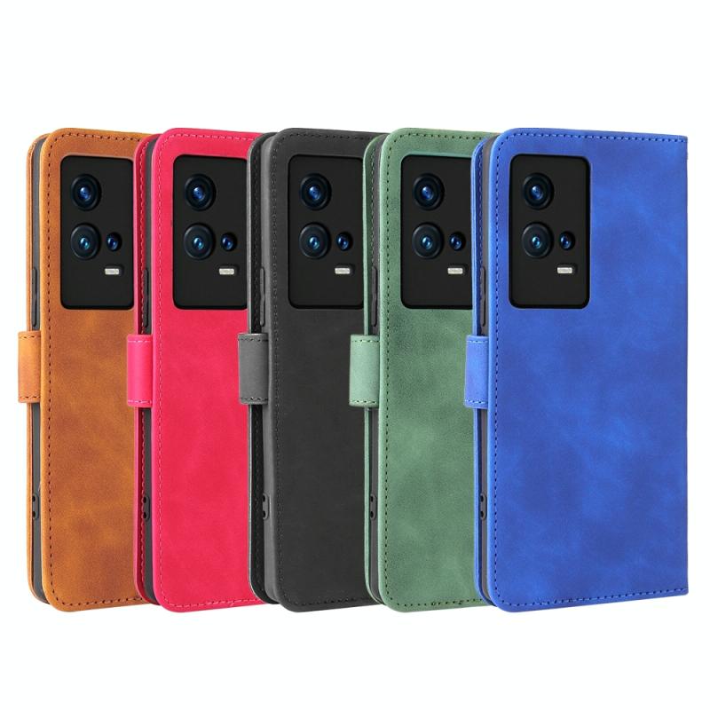 Θήκη για vivo iQOO 8 Pro με αίσθηση δέρματος, μονόχρωμη, με μαγνητικό κούμπωμα, οριζόντια αναδιπλούμενη από δερματίνη PU με βάση στήριξης & θήκες για κάρτες & πορτοφόλι (Καφέ)