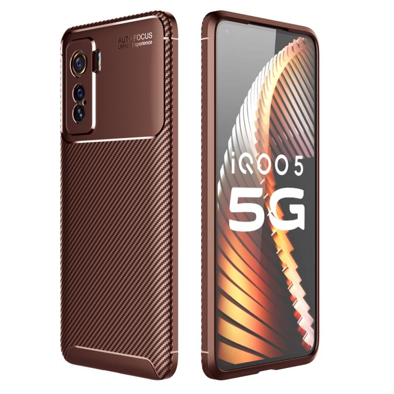 For vivo IQOO5 Carbon Fiber Texture Shockproof TPU Case(Brown)