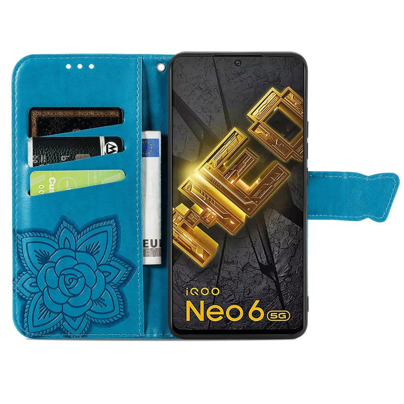 For vivo iQOO Neo 6 Butterfly Love Flower Embossed Leather Phone Case(Blue)