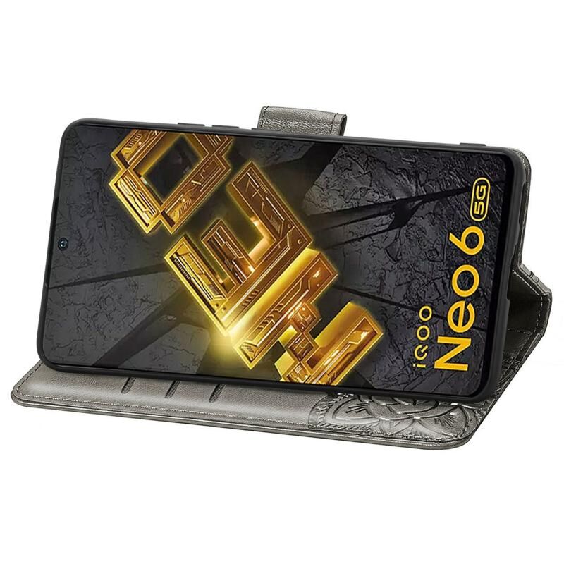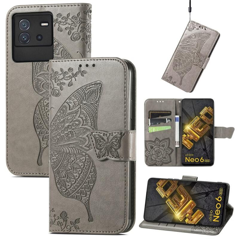 Θήκη τηλεφώνου από δέρμα με ανάγλυφο σχέδιο πεταλούδας και λουλουδιών για vivo iQOO Neo 6 (Χρυσό Ροζ)