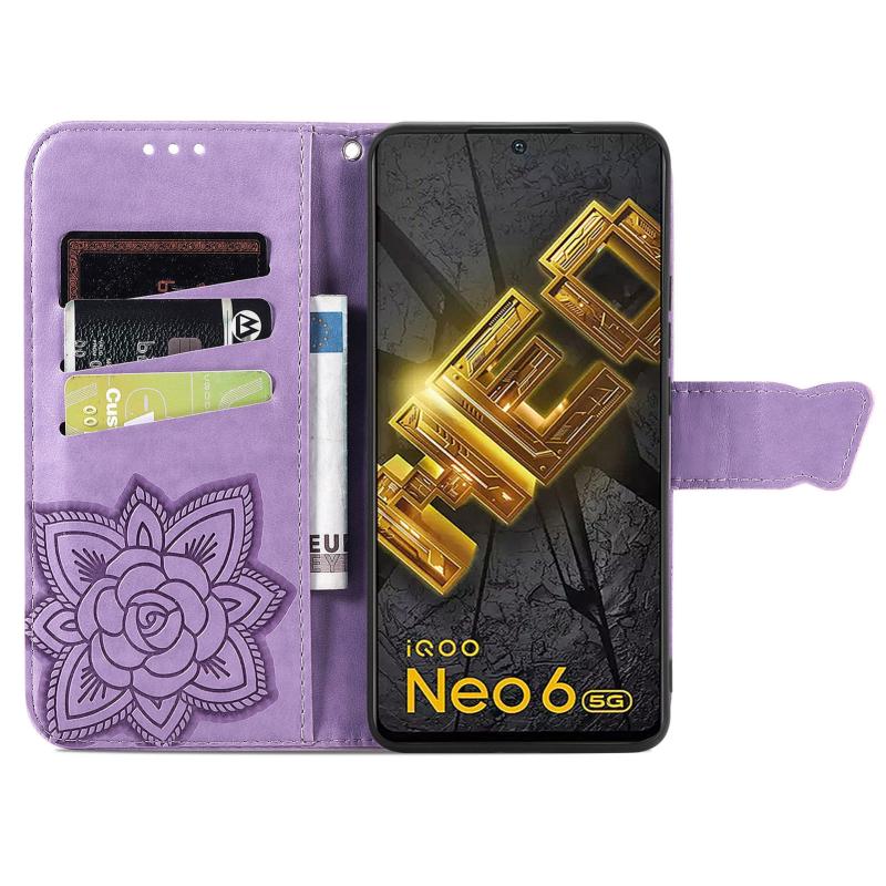 For vivo iQOO Neo 6 Butterfly Love Flower Embossed Leather Phone Case(Lavender)