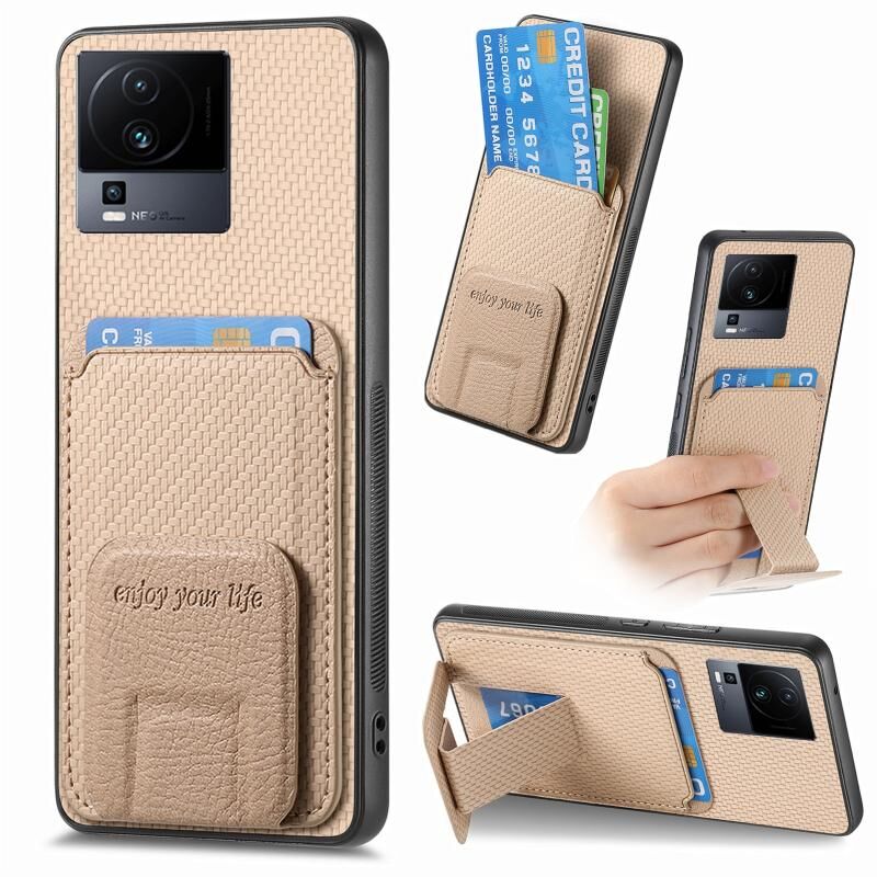 Θήκη τηλεφώνου για vivo iQOO Neo 7 SE από ανθρακονήματα με θήκη καρτών και βάση στήριξης (Μπλε)