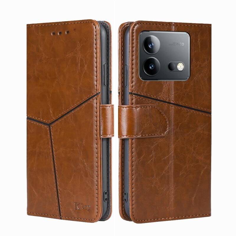 Για vivo iQOO Neo 8 5G / 8 Pro 5G γεωμετρική ραφή δερμάτινη θήκη τηλεφώνου (ανοιχτό καφέ)