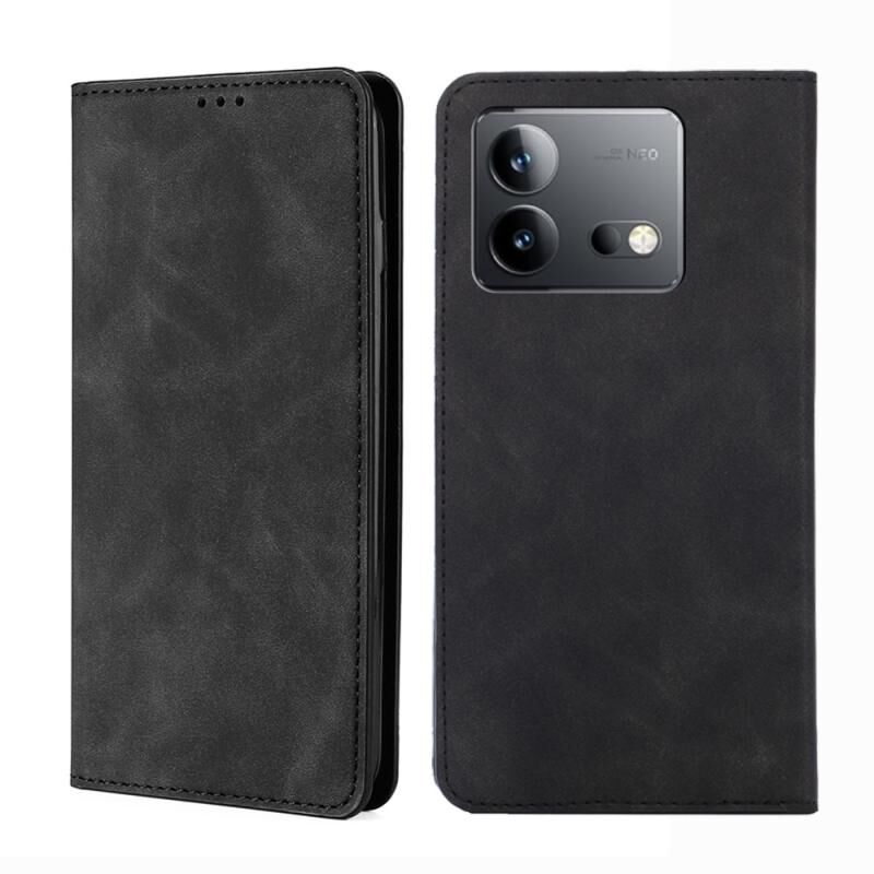Για το vivo iQOO Neo 8 5G / 8 Pro 5G Skin Feel Μαγνητική δερμάτινη θήκη τηλεφώνου (Μαύρο)