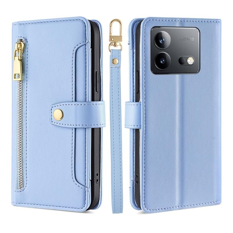 Για vivo iQOO Neo 8 / 8 Pro 5G Lite Sheep Texture Cross-body φερμουάρ πορτοφόλι δερμάτινη θήκη τηλεφώνου (Μπλε)
