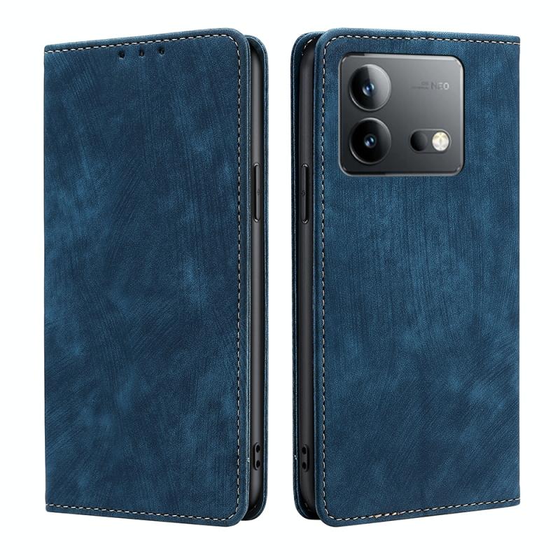 For vivo iQOO Neo 8 / 8 Pro 5G RFID Anti-theft Brush Magnetic Leather Phone Case(Blue)