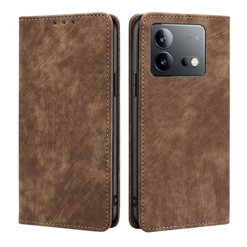 For vivo iQOO Neo 8 / 8 Pro 5G RFID Anti-theft Brush Magnetic Leather Phone Case(Brown)