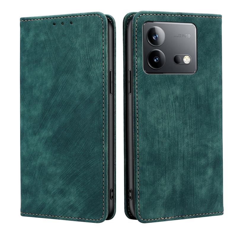 For vivo iQOO Neo 8 / 8 Pro 5G RFID Anti-theft Brush Magnetic Leather Phone Case(Green)