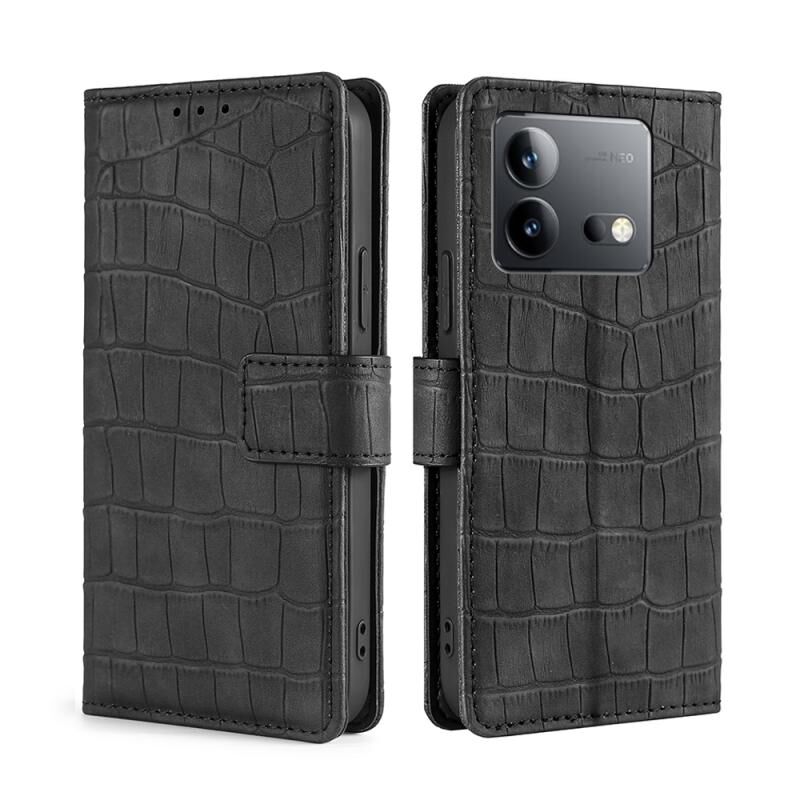 Θήκη τηλεφώνου από δέρμα με μαγνητικό κούμπωμα και υφή κροκόδειλου για vivo iQOO Neo 8 / 8 Pro 5G (Μαύρο)