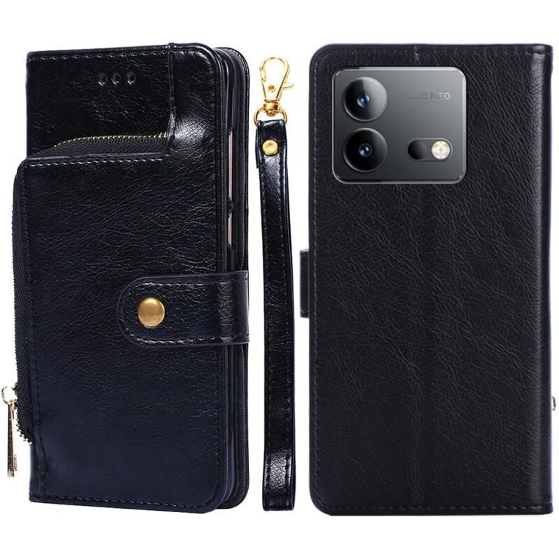 Για vivo iQOO Neo 8 / 8 Pro 5G φερμουάρ τσάντα δερμάτινη θήκη τηλεφώνου (μαύρο)