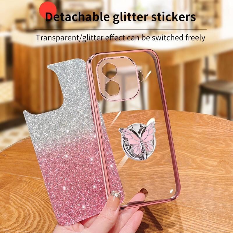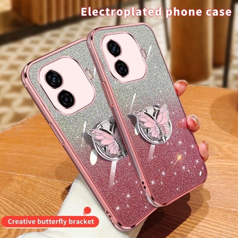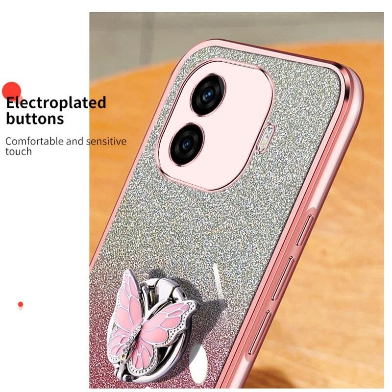 Θήκη τηλεφώνου TPU για vivo iQOO Neo Z9 με επιμετάλλωση, διαβαθμισμένη λάμψη, σχέδιο πεταλούδας (ρόζ)