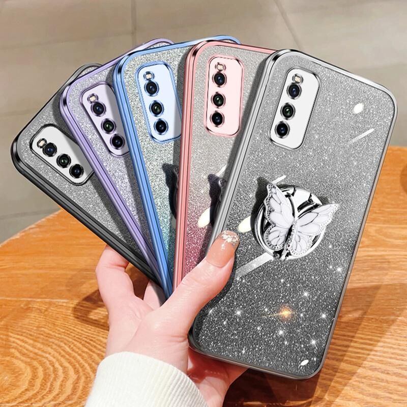 Θήκη τηλεφώνου TPU για vivo iQOO Neo3 με επιμετάλλωση, διαβαθμισμένη λάμψη, σχέδιο πεταλούδας (Ροζ)