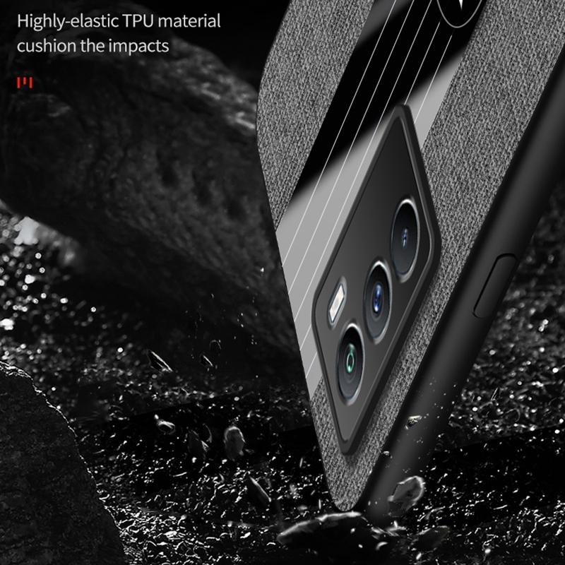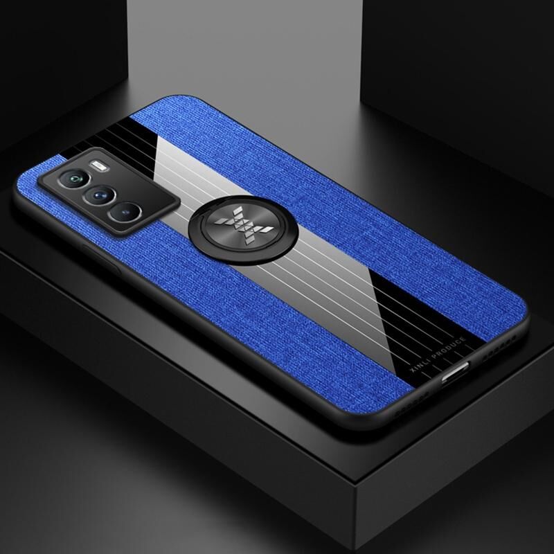 Θήκη τηλεφώνου TPU με υφή καμβά και δακτύλιο στήριξης για vivo iQOO Neo5 S XINLI (Καφέ) (Μπλε)