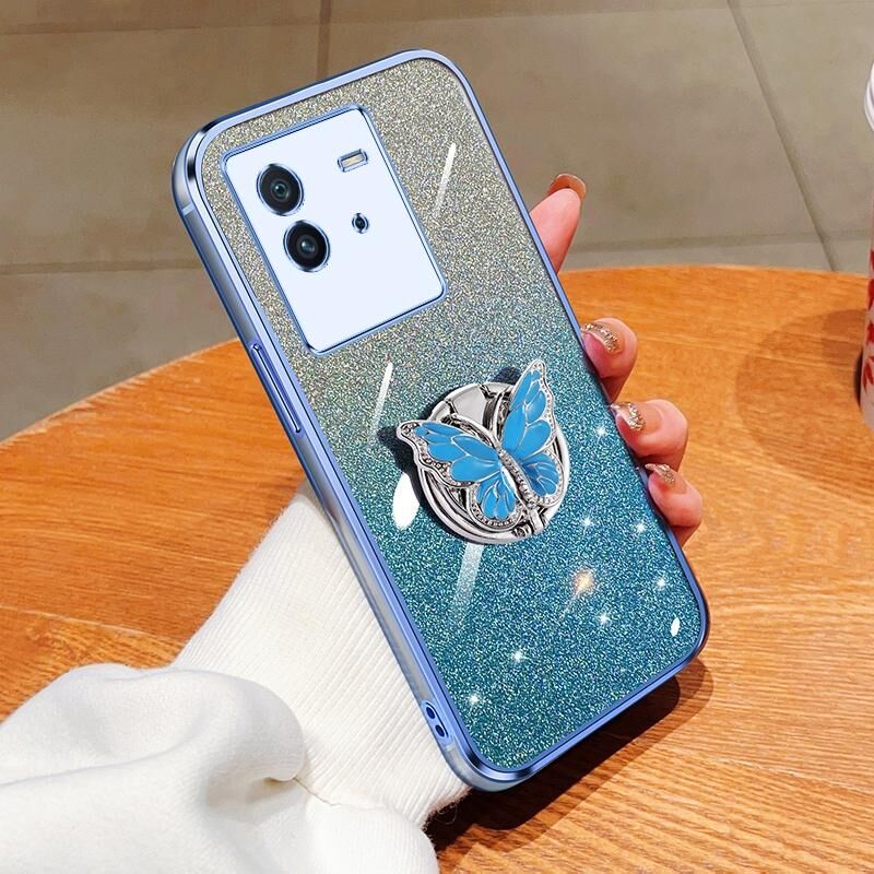 Θήκη τηλεφώνου TPU για vivo iQOO Neo6 με επιμετάλλωση, διαβαθμισμένη λάμψη, σχέδιο πεταλούδας (Μπλε Σιέρρα)