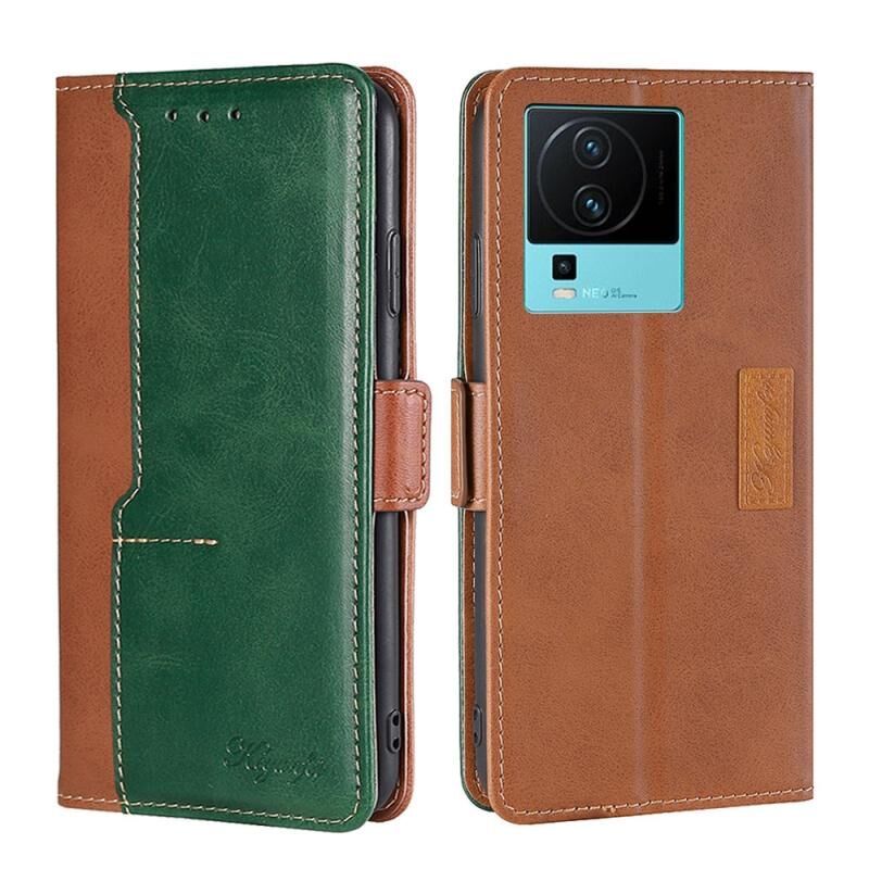 Για vivo iQOO Neo7 αντίθεση χρώμα πλευρά πόρπη δερμάτινη θήκη τηλεφώνου υπόθεση (ανοιχτό καφέ + πράσινο)