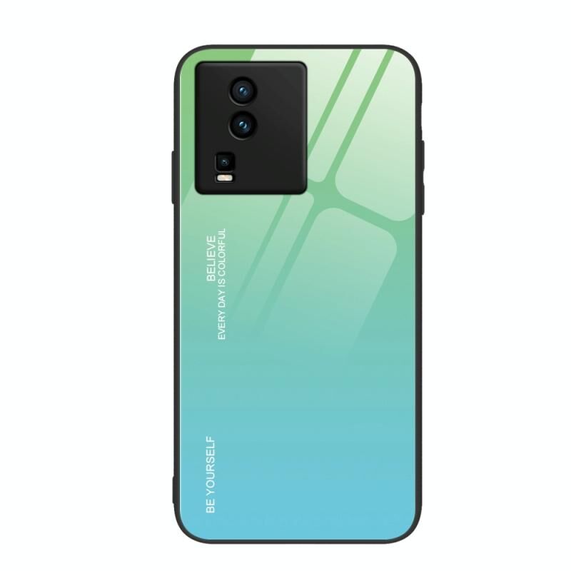 Για vivo iQOO Neo7 Κλίση χρώμα γυαλί τηλέφωνο υπόθεση (πράσινο κυανό)