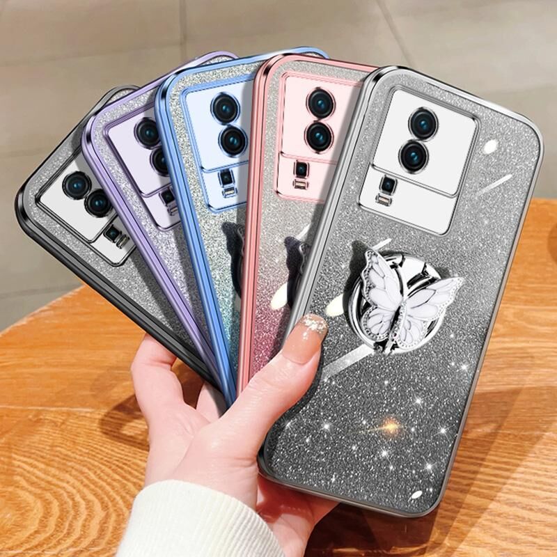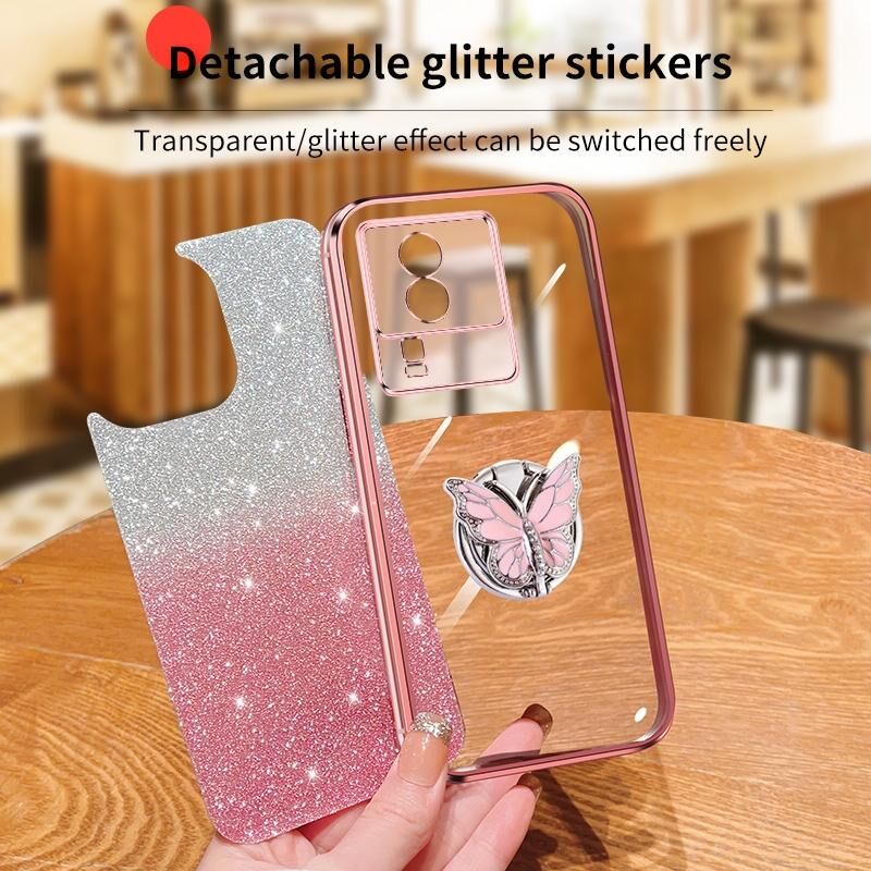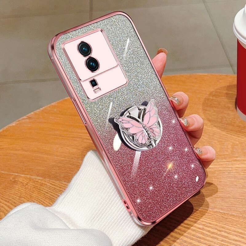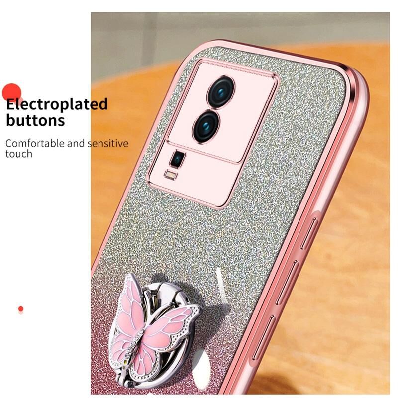 Θήκη τηλεφώνου TPU για vivo iQOO Neo7 με επιμετάλλωση, διαβαθμισμένη λάμψη, πεταλούδα (ρόζ)