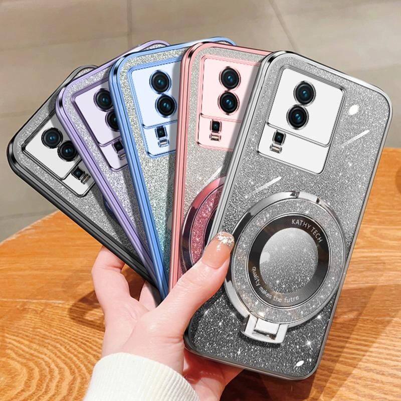 Θήκη τηλεφώνου TPU για vivo iQOO Neo7 με επιμετάλλωση, διαβαθμισμένη λάμψη, στρογγυλή βάση (Ροζ)
