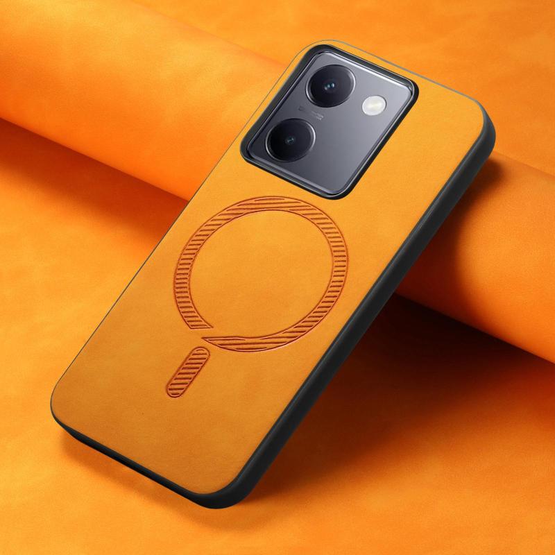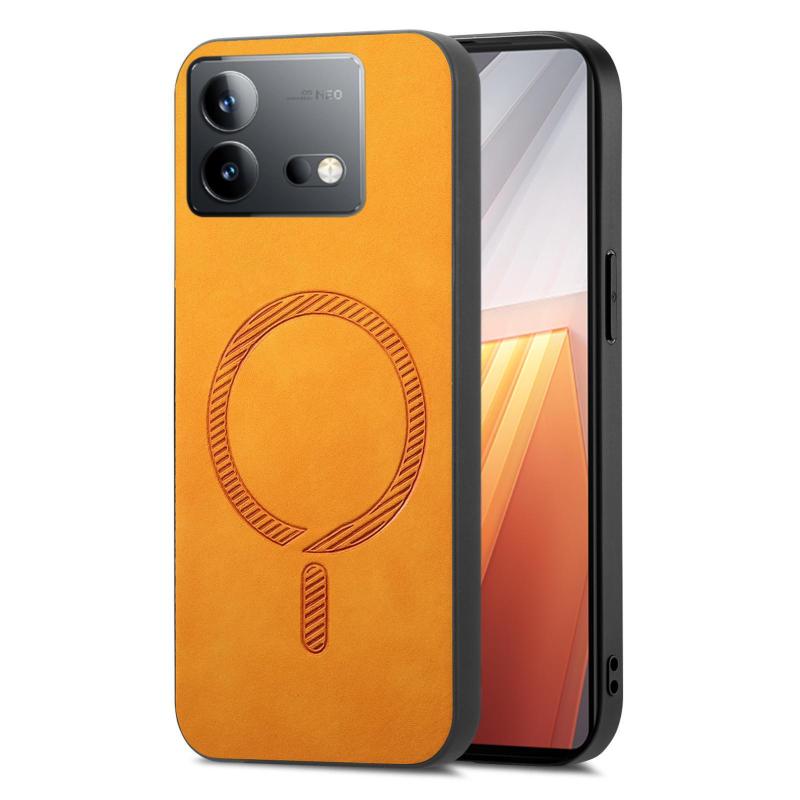 Θήκη τηλεφώνου με μαγνητική πλάτη PU Retro Magsafe για vivo iQOO Neo8 /8 Pro (Κίτρινο)