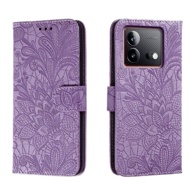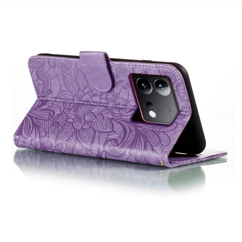 Για vivo iQOO Neo8 Lace λουλούδι ανάγλυφο Flip υπόθεση τηλεφώνου δέρμα (Μωβ)