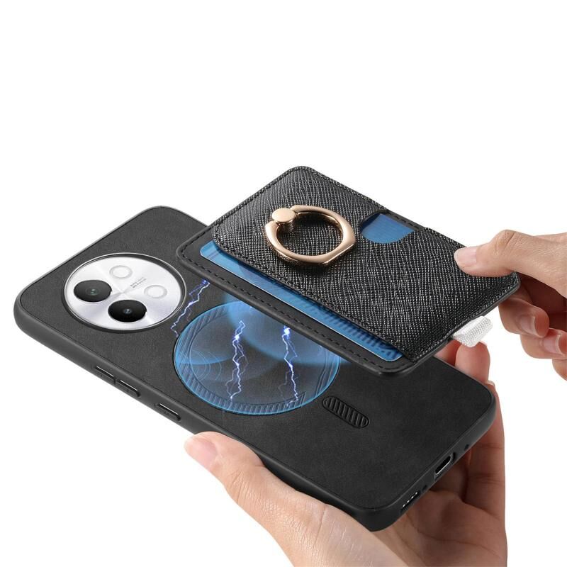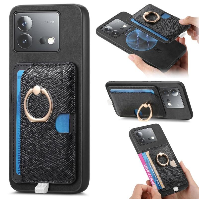 Θήκη τηλεφώνου MagSafe για Vivo iQOO Neo8 / Neo8 Pro, Ρετρό Δερμάτινη με Σταυρωτό Σχέδιο και Θήκη Κάρτας στο Πλαϊνό Μέρος (Μαύρο)