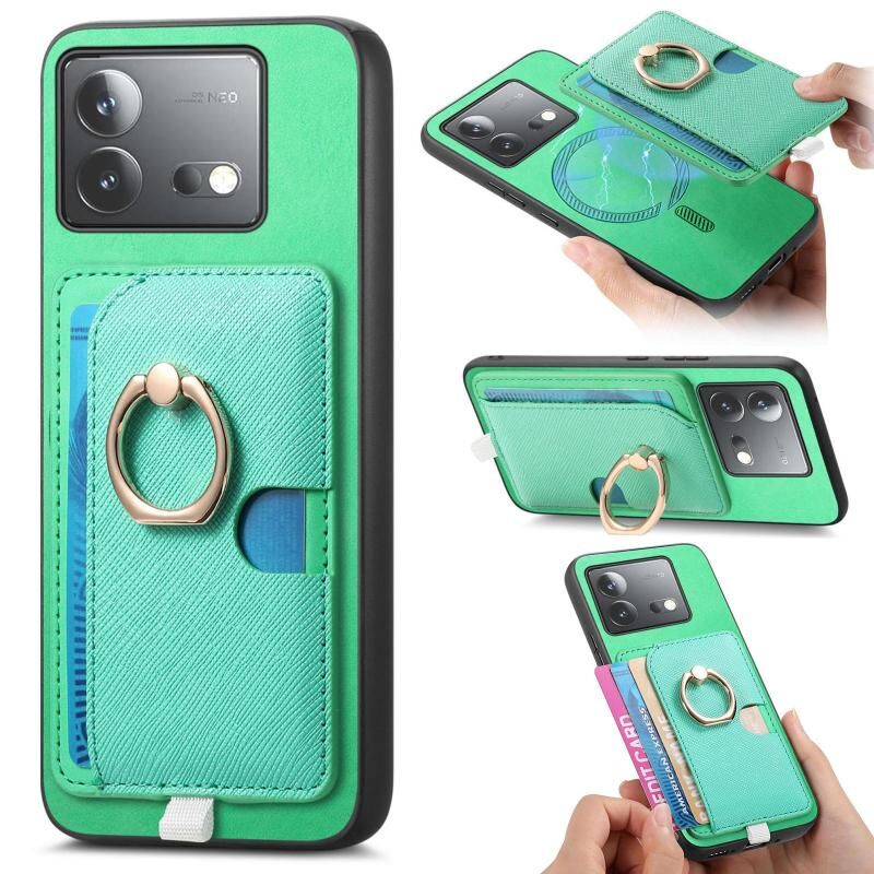 Θήκη τηλεφώνου MagSafe για Vivo iQOO Neo8 / Neo8 Pro, Ρετρό Δερμάτινη με Σταυρωτό Σχέδιο και Θήκη Κάρτας στο Πλαϊνό Μέρος (πράσινο)