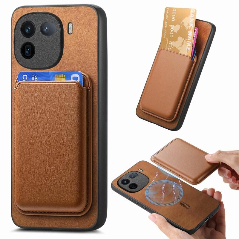 Θήκη κινητού τηλεφώνου με μαγνητική βάση και κάρτες, από PU δέρμα, για vivo iQOO Neo8 / Neo8 Pro (Κίτρινο)