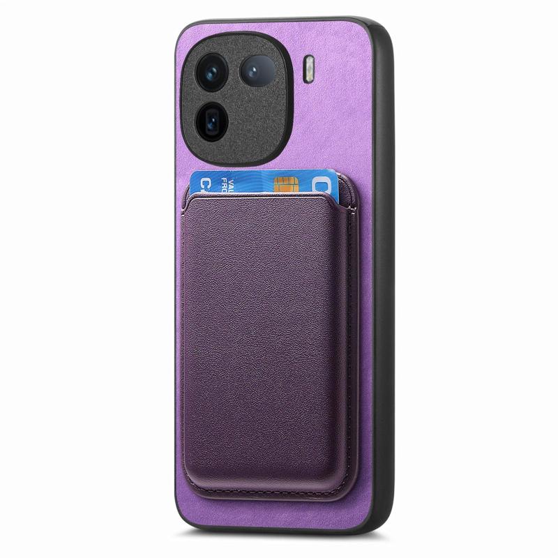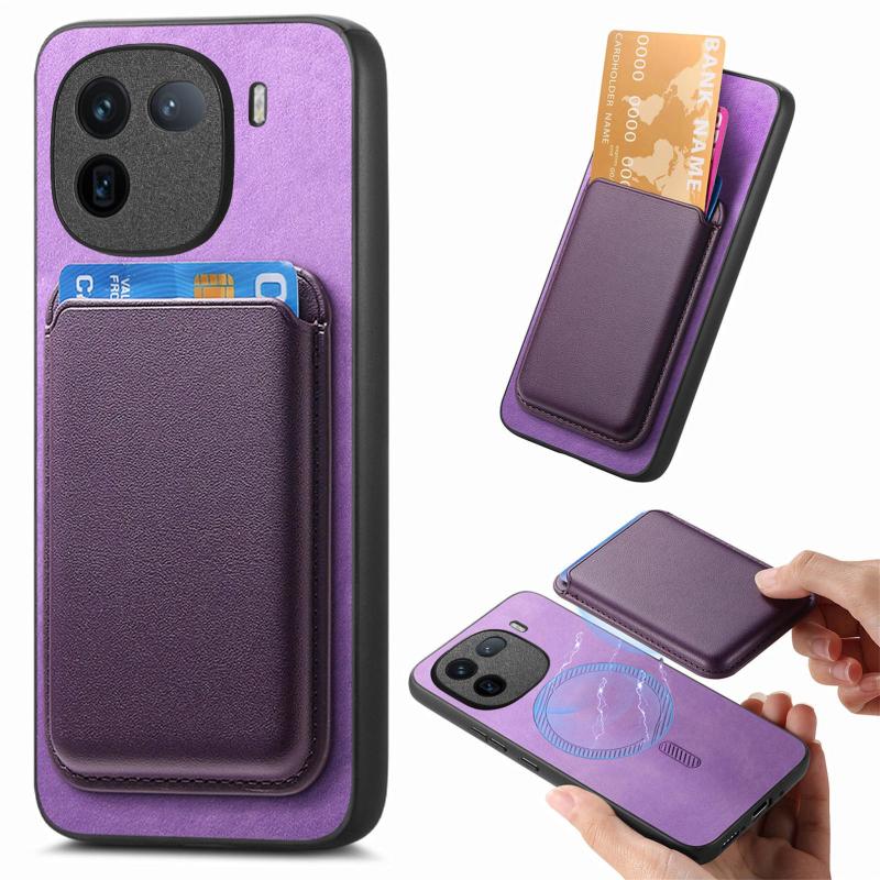 For vivo iQOO Neo8 / Neo8 Pro Retro Magsafe Card Bag PU Back Cover Phone Case(Purple)