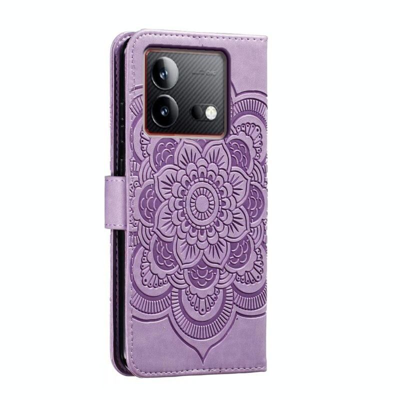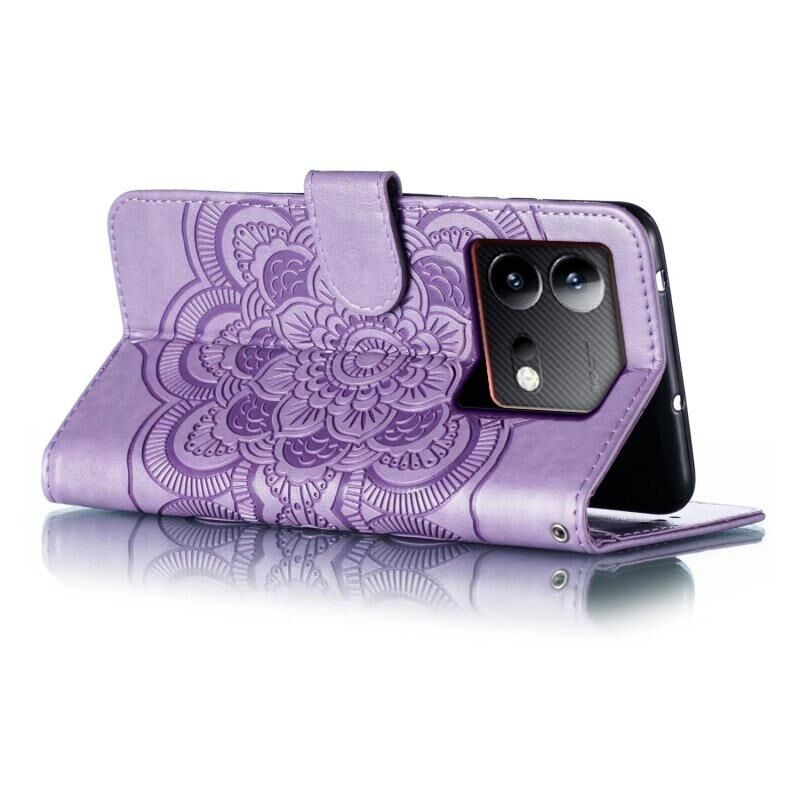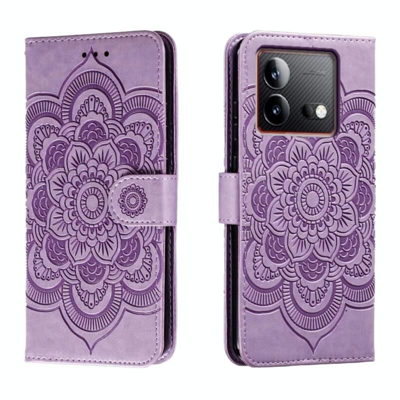 Για vivo iQOO Neo8 Sun Mandala ανάγλυφο μοτίβο τηλέφωνο δερμάτινη θήκη (Μωβ)