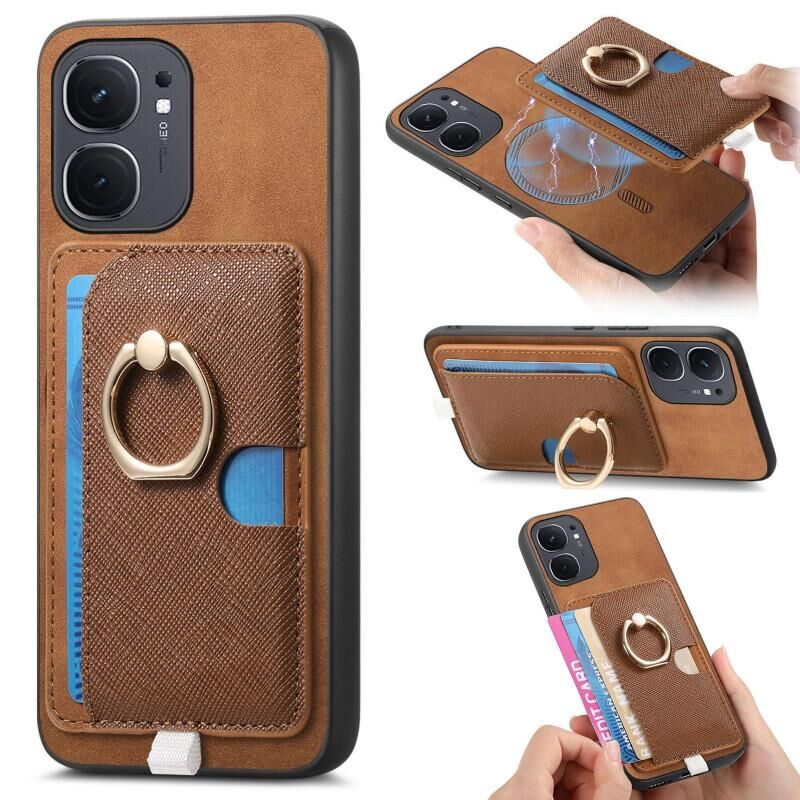 Θήκη τηλεφώνου MagSafe για vivo iQOO Neo9 / Neo9 Pro 5G, δερμάτινη με σχέδιο ρετρό, με σταυρωτή υφή, ενσωματωμένη θήκη για κάρτες και δακτύλιο στήριξης (Μπλε)