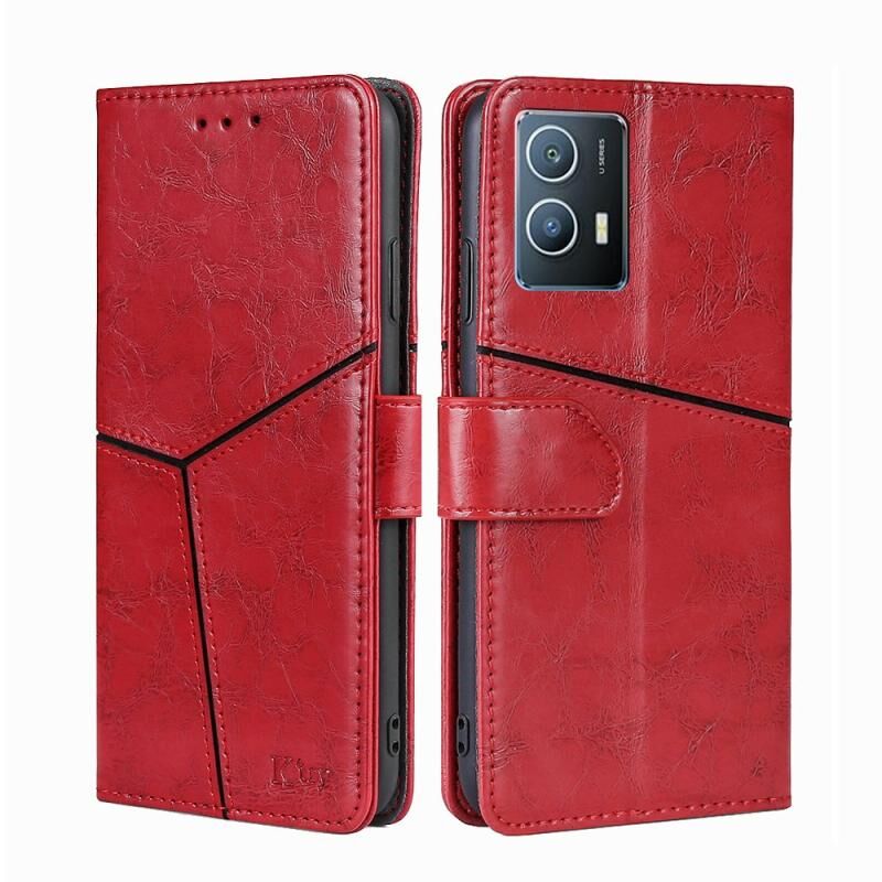 Για vivo iQOO U5 5G γεωμετρική ραφή οριζόντια Flip υπόθεση τηλεφώνου δέρματος (κόκκινο)