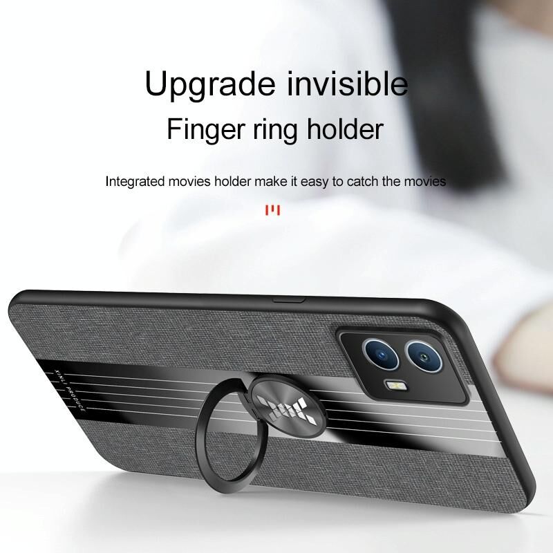 Για vivo iQOO U5 XINLI ραφή ύφασμα Textue TPU τηλέφωνο υπόθεση με κάτοχο δαχτυλίδι (κόκκινο) (XINLI)